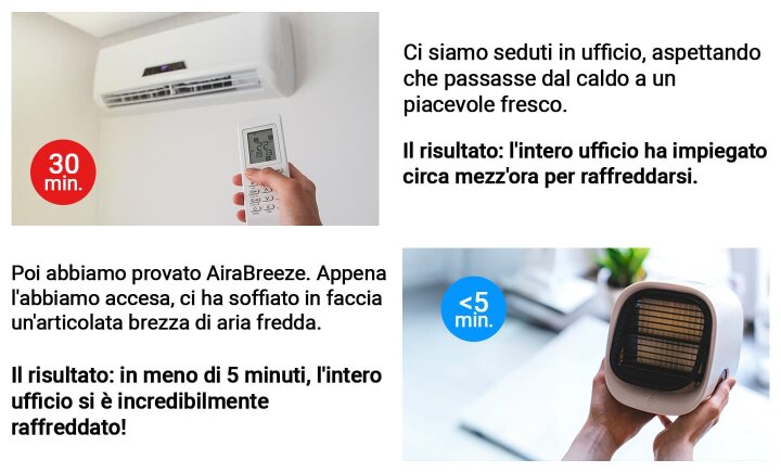 LA NOSTRA STORIA INIZIA QUI: L’INDUSTRIA DEI CONDIZIONATORI D’ARIA HA TRUFFATO LE PERSONE NEGLI ULTIMI DIECI ANNI. 3 grandi aziende. Potevano fissare qualsiasi prezzo, spingendo un prodotto mediocre. Il loro prodotto principale: le unità di condizionamento d’aria tradizionali. Sono obsoleti, costosi, rumorosi, pericolosi da pulire e costano una fortuna in elettricità. E non si possono spostare in casa! Come alternativa portatile, l’industria dell’AC ha promosso i ventilatori. Sì, sono più economici, ma soffiano solo l’aria in giro. E se l’aria è calda? La faranno sentire solo più calda. Le cose potrebbero peggiorare per gli italiani? Purtroppo sì – i servizi meteorologici nazionali riferiscono che sarà un’estate super calda, una delle più calde degli ultimi decenni. Ciò significa che le bollette dell’elettricità saliranno alle stelle tra qualche mese! Questo nuovo tipo di tecnologia di raffreddamento potrebbe essere il salvatore? Incontrare AiraBreeze. L’azienda che sta dietro a AiraBreeze ha reclutato ingegneri leader del settore per cambiare tutto ciò che sappiamo sui condizionatori d’aria. Il loro obiettivo era quello di realizzare un’unità AC a basso costo e a bassa manutenzione, adatta a qualsiasi casa, ufficio o auto. E ci sono riusciti! AiraBreeze ha sbalordito il settore AC da 135 miliardi di euro con il suo modello innovativo. Perché? Rispetto ai tradizionali condizionatori d’aria, è più efficiente del 300%, più piccolo, portatile e raffredda qualsiasi stanza molto più velocemente, in meno di 5 minuti! AiraBreeze utilizza un nuovo sistema di raffreddamento con tecnologia Insta-Cool™ che consente a tutti di rendere le stanze calde e le bollette energetiche elevate una reliquia del passato. In base a dati recenti, risparmia il 50-75% di elettricità rispetto ai condizionatori d’aria tradizionali. Si può dire che AiraBreeze è la nuova generazione di unità AC! Abbiamo dovuto mettere alla prova queste affermazioni. Il nostro verdetto? Non c’è paragone, il AiraBreeze è il chiaro vincitore. E ha senso… AiraBreeze La tecnologia di questo sistema è molto più veloce, perché utilizza l’acqua per raffreddare l’aria in entrata, e poi pompa aria fredda dall’altra parte. Basta riempire il serbatoio da 300 ml/10,1 oz con acqua e premere il pulsante di avvio! Il che ci porta alla grande domanda… Basta riempire il serbatoio da 300 ml/10,1 oz con acqua. Lo accenda, Il sistema di raffreddamento con tecnologia Insta-Cool™ trasformerà l’aria calda e afosa in aria gelida in pochi secondi. Durante i nostri test, abbiamo scoperto che un solo riempimento del serbatoio AiraBreeze può durare un’intera giornata! Inoltre, AiraBreeze offre 3 modalità per controllare la temperatura della sua stanza: Modalità Bassa – una brezza fresca e rilassante; Modalità media – per chi sente caldo; Modalità Turbo – per chi ha bisogno di raffreddare velocemente qualsiasi spazio. La parte migliore? Può utilizzarlo con qualsiasi porta USB-C – anche il suo laptop potrebbe alimentarlo! Questo significa che può portarlo in qualsiasi stanza desideri, in ufficio, in garage, in cucina… Ottenga un sollievo immediato dal calore, ovunque vada. Ora lei e la sua famiglia potete stare comodi e freschi senza dovervi preoccupare delle bollette elettriche o delle interruzioni di corrente. La tecnologia AiraBreeze e le sue caratteristiche uniche parlano da sole: Impostare la modalità – creare una brezza delicata o attivare il turbo per un raffreddamento istantaneo. Quello che preferisce & ha bisogno per il momento. Controllo della qualità dell’aria – può agire come umidificatore. Se desidera un’aria pulita, fresca e umidificata, Veloce ed efficiente – Velocità diverse – 3 velocità del ventilatore. La imposti in base al suo livello di comfort ottimale. Facile da usare – molto facile da riempire con acqua quando si esaurisce. Serbatoio di grande capacità da 300 ml/10,1 oz. Leggero – compatto e facile da trasportare. Pesa meno di 2 libbre. Estremamente silenzioso – Nessun rumore di ventola forte e fastidioso che possa disturbare la sua concentrazione o il suo sonno. Controllo totale – Bocchette regolabili per dirigere l’aria fresca dove vuole. Nessuna installazione o manutenzione fastidiosa – …e non è tutto! Quando è sempre in casa, l’inquinamento interno non fa che peggiorare. Anche le particelle dei suoi vestiti e dei suoi capelli viaggiano nell’aria. Quando la temperatura sale, è più probabile che vengano rilasciati alcuni inquinanti all’interno, che possono influire sulla qualità dell’aria della sua casa. Quindi, è importante essere consapevoli e prendere provvedimenti per mantenere l’ambiente interno pulito e fresco, soprattutto durante le calde giornate estive! Q: Il dispositivo “Siamo disgustati da quanto sia avida la grande industria dell’AC e volevamo fare loro il dito medio. Quindi…” Ed ecco che la storia diventa ancora più interessante… Come tutti sappiamo, le unità AC tradizionali costano oltre 800 € senza l’installazione e la manutenzione, quindi ci si aspetta che AiraBreeze costi circa altrettanto… Ma i fondatori hanno deciso di vendere il sito AiraBreeze al prezzo amichevole di 59.99 € (prezzo normale di 119,98 €) con un grande sconto del 50%. grande sconto del 50% – e si è già esaurito x3 quest’estate negli Stati Uniti! ANCORA MEGLIO, se ne ordina di più – ottiene uno sconto maggiore. La confezione best-seller da 3 di AiraBreeze Air Coolers viene venduta a soli 47,49 € l’una. UNO SCONTO DEL 70%. Clicchi qui per richiedere uno sconto su AiraBreeze (se è ancora disponibile) >>. Secondo noi, è un piccolo prezzo da pagare per un’AC nuova di zecca e ultra-efficiente che la tenga al fresco quest’estate. Nelle parole dei fondatori: “Sapeva che i grandi marchi spendono miliardi in pubblicità, negozi fisici e bonus dei capi? Riesce a indovinare chi paga pe