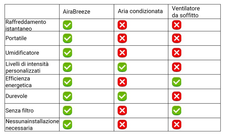Come si colloca AiraBreeze rispetto ad altri raffreddatori d’aria?